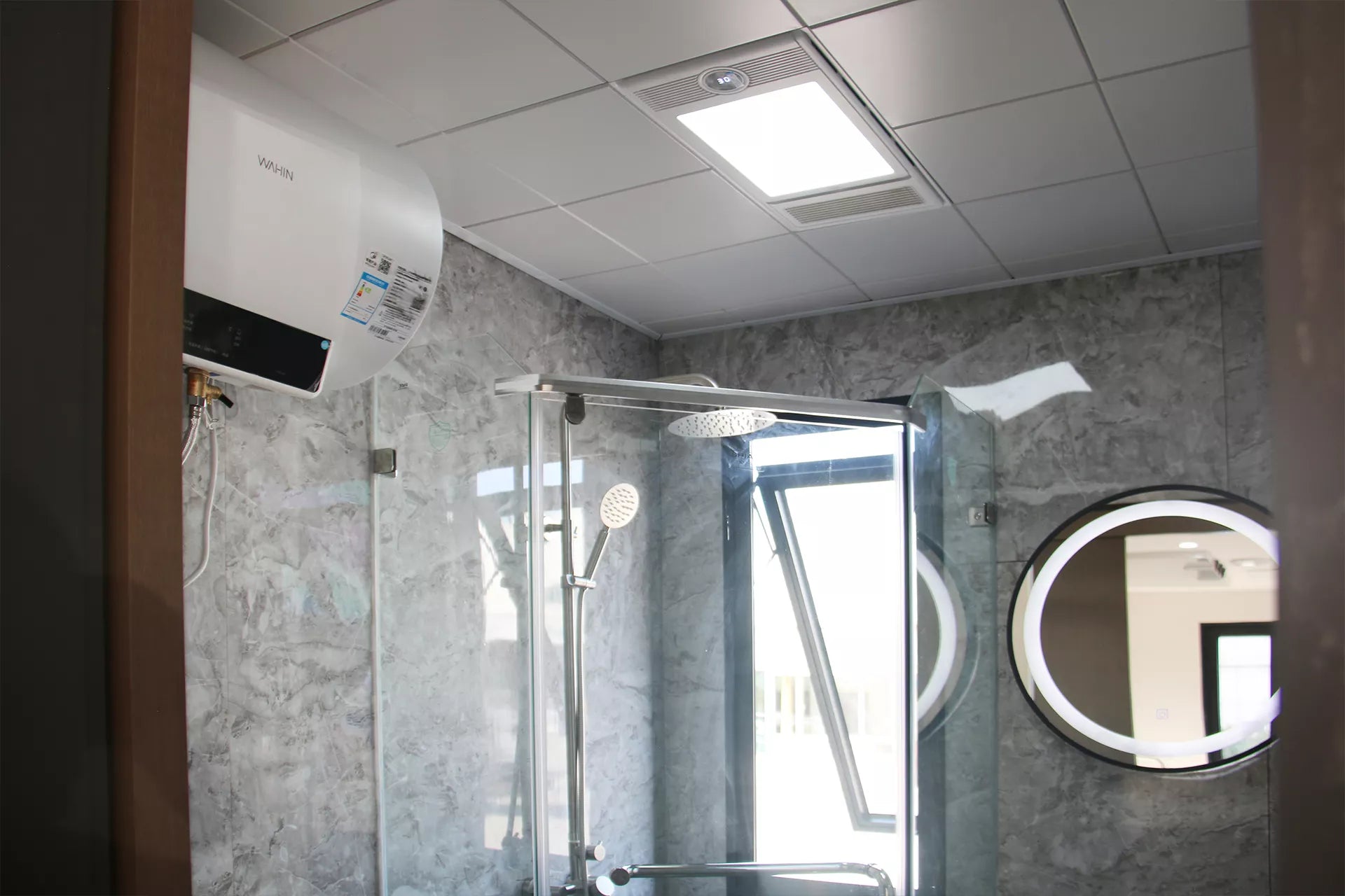 9.Shower room with a four-in-one bath heater,explosion-proof tempered glass sliding door